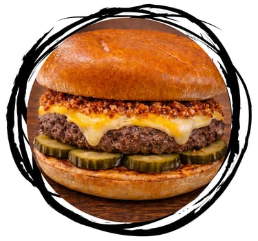 Pão Brioche, Blend Bovino 120gr*, Molho Especial da Casa, Cheddar Cremoso, Queijo Mussarela, Picles e Farofa de Bacon.