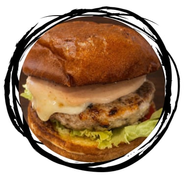 Pão Brioche, Blend Frango 120g*, Queijo Coalho Tostado, Cheddar Cremoso, Tomate Fresco, Alface Americano, Molho Especial da Casa.