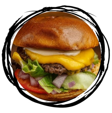 Pão Brioche, Blend Bovino 120g*, Queijo Cheddar, Tomate Fresco, Alface Americano, Cebola Roxa, Molho Especial da Casa.
