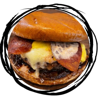 Pão Brioche, Blend Bovino 120gr*, Molho Especial da Casa, Cheddar Cremoso, Queijo Mussarela, Calabresa Defumada e Cebola Caramelizada.